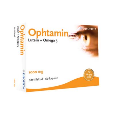 Ophtamin Omega 3 + lutein indeholder vitaminer til opretholdelse af et normalt syn. Indeholder også zink, kobber, C-og E vitamin og lutein/zeaxanthin. Køb f.eks. 3 x 60 stk = 650,- 1 æske koster kr. 258,-